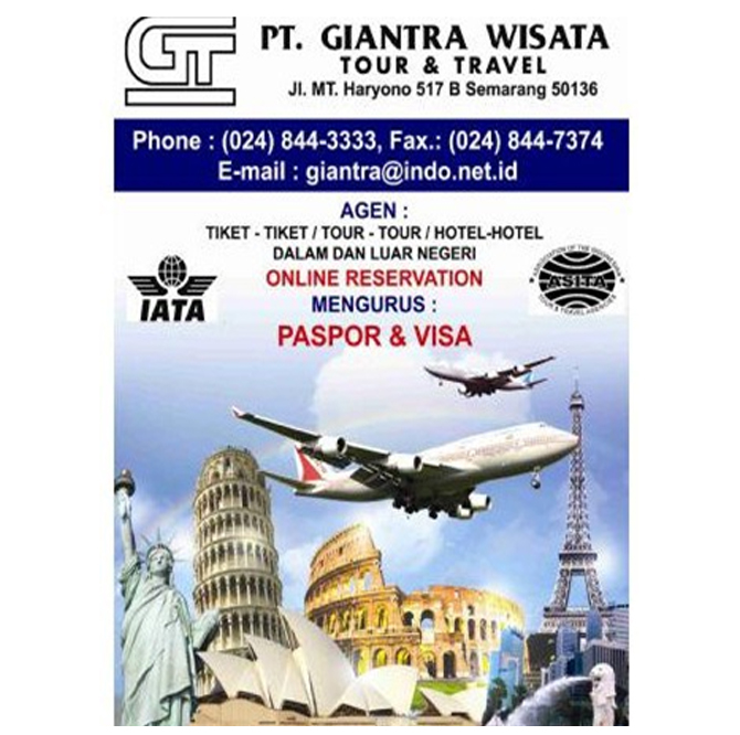 PT Giantra Wisata or known as Giantra Travel is a company who dedicated in travel services. Establish since 1995 until now. Our commited is to handlling all travel services in domestic and international, make it easy for everyone in need.